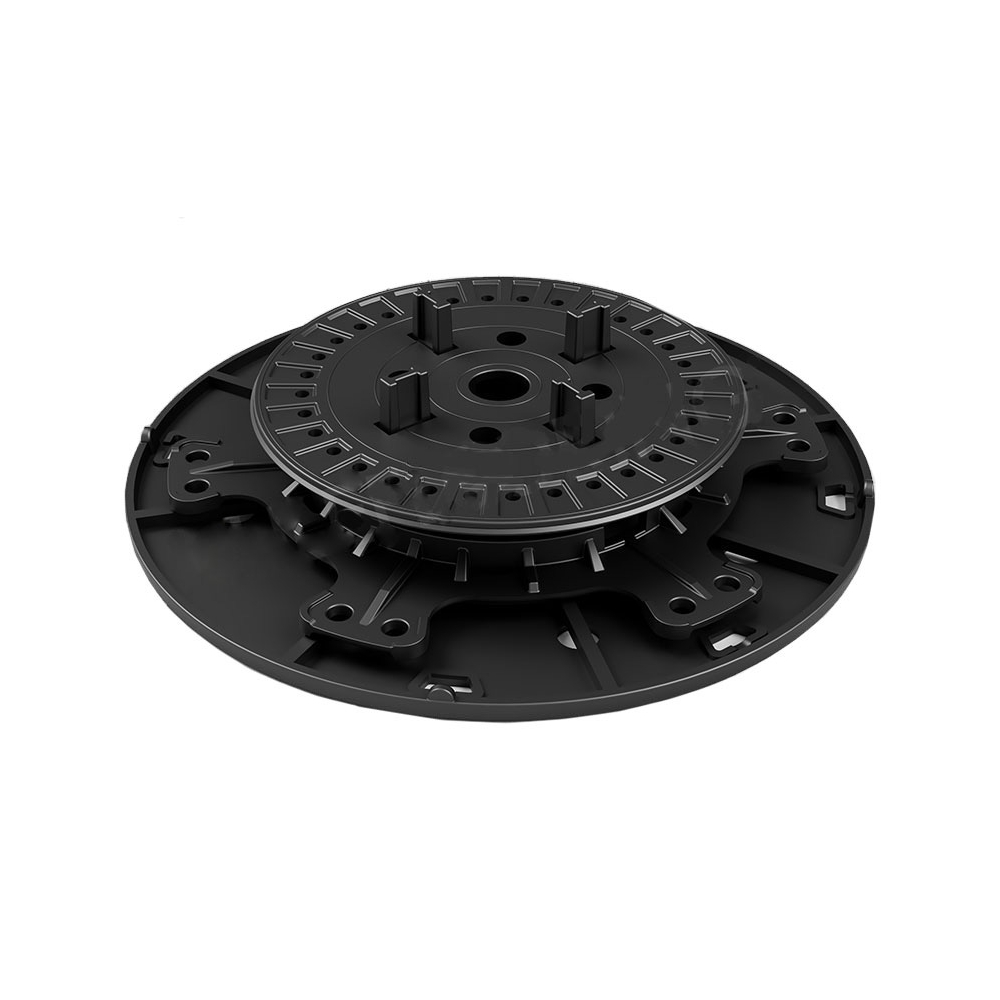 Un plot reglabil pentru pardoseala suprainaltata de exterior ProLevel este alcatuit din mai multe elemente cheie, cele mai importante fiind baza plotului si capul acestuia. Fata de celelelalte tipuri de ploturi de pe piata, capul plotului ProLevel este atasat direct pe filet, evitand astfel riscul de a iesi din filet.